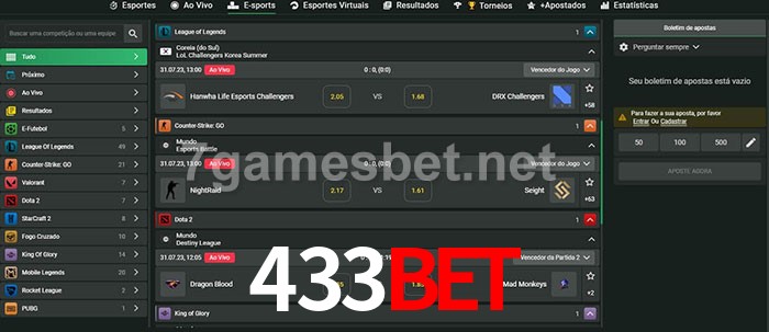O 433bet oferece uma grande seleção de opções de apostas em e-sports com probabilidades competitivas